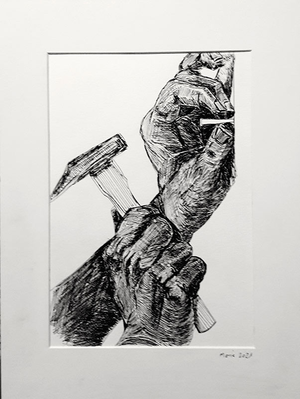 Divers travaux à l’encre, tests, croquis, commandes